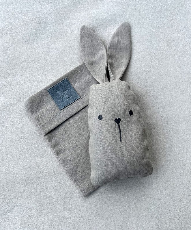 Žaislas ir maišelis pagaminti iš 100% lino.